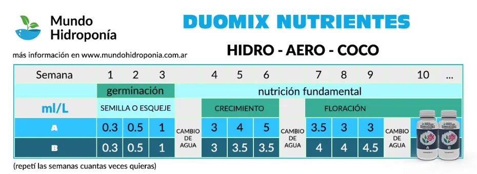 Los nutrientes DuoMix (A y B) son un fertilizante concentrado en dos frascos.